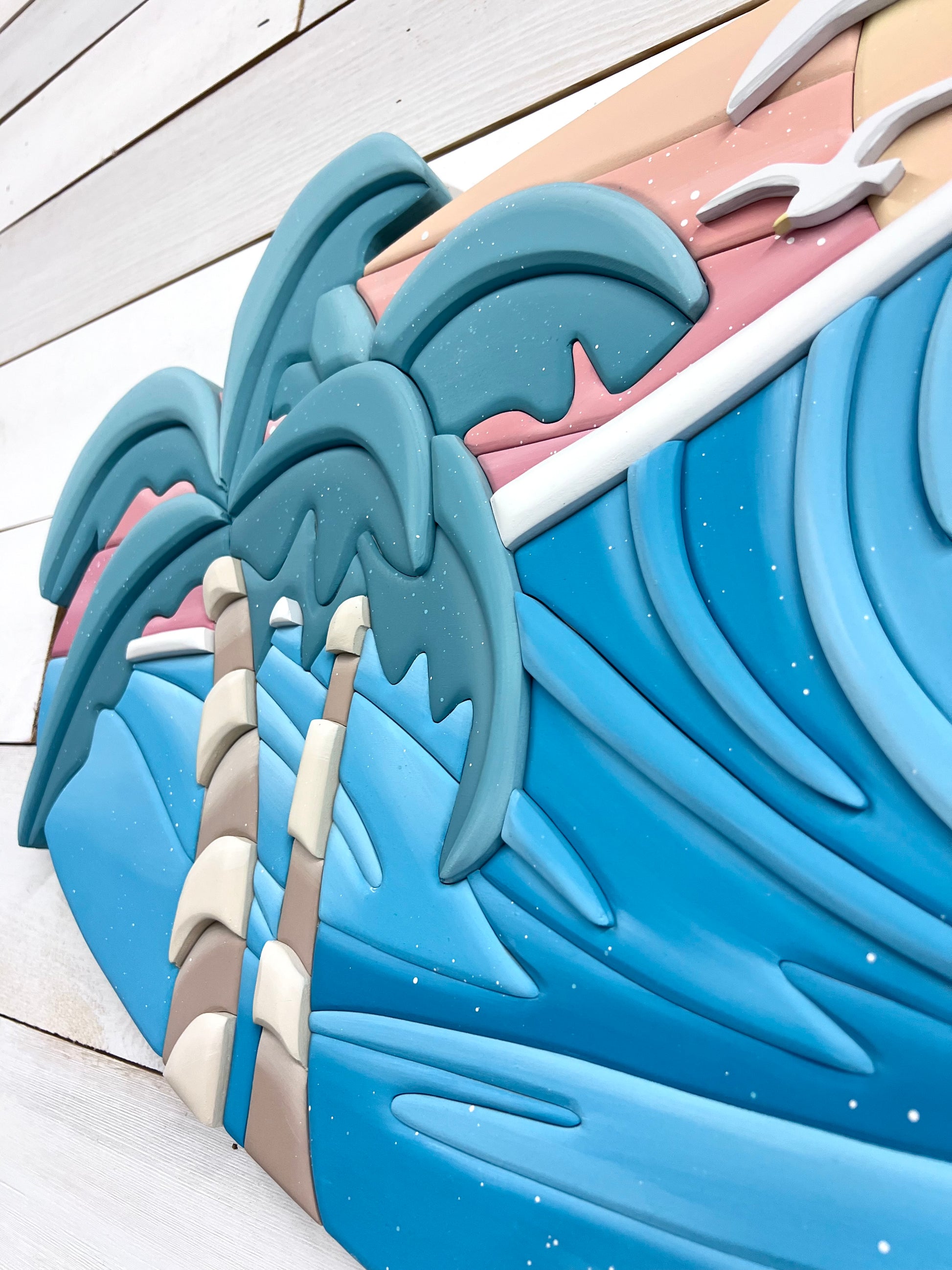 BIG Ocean Wave Surfboard with Sunset & Palms