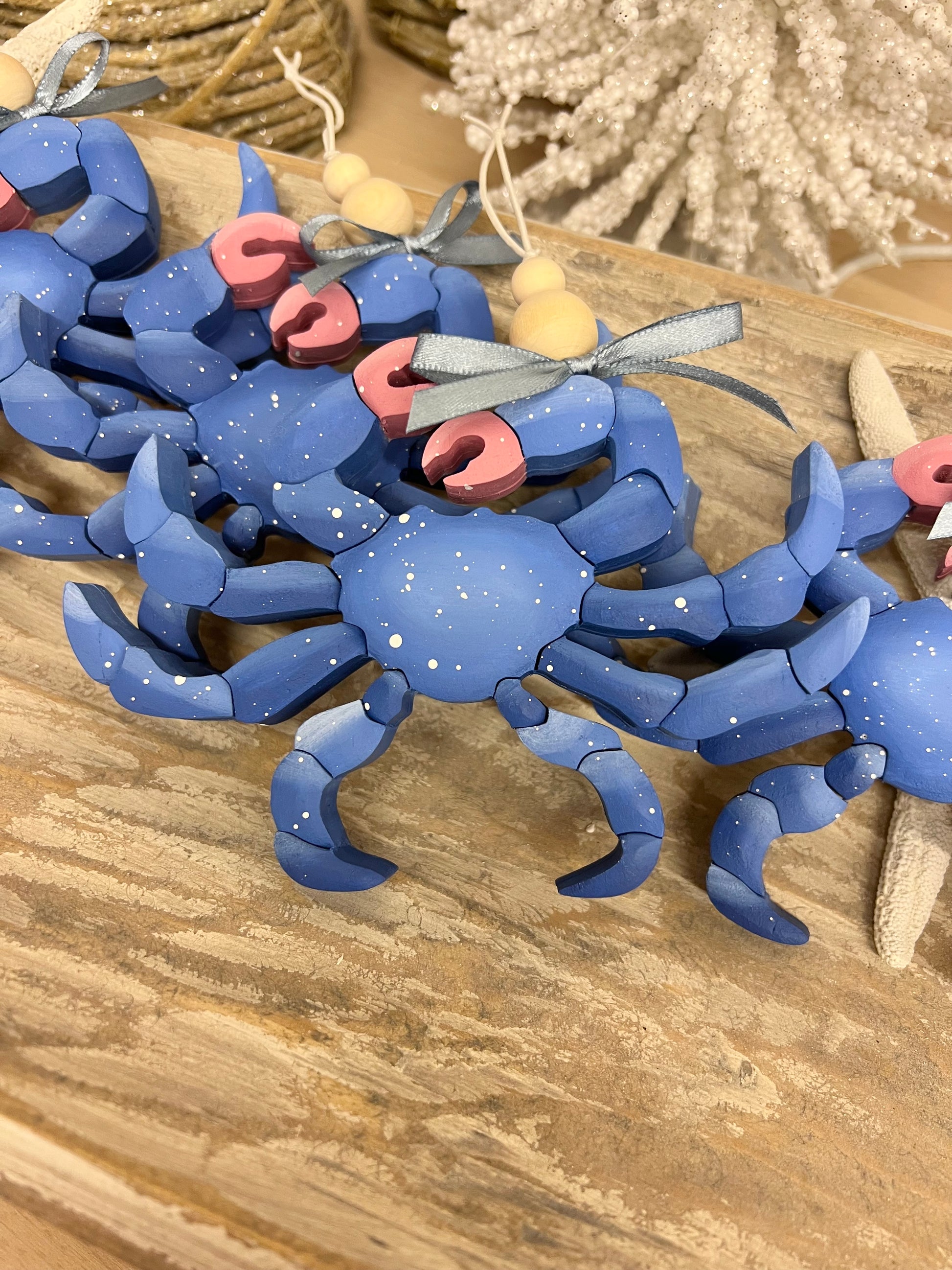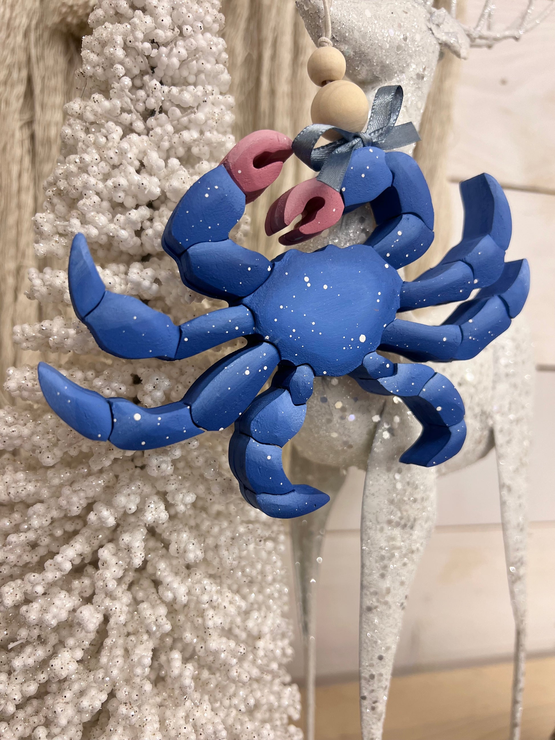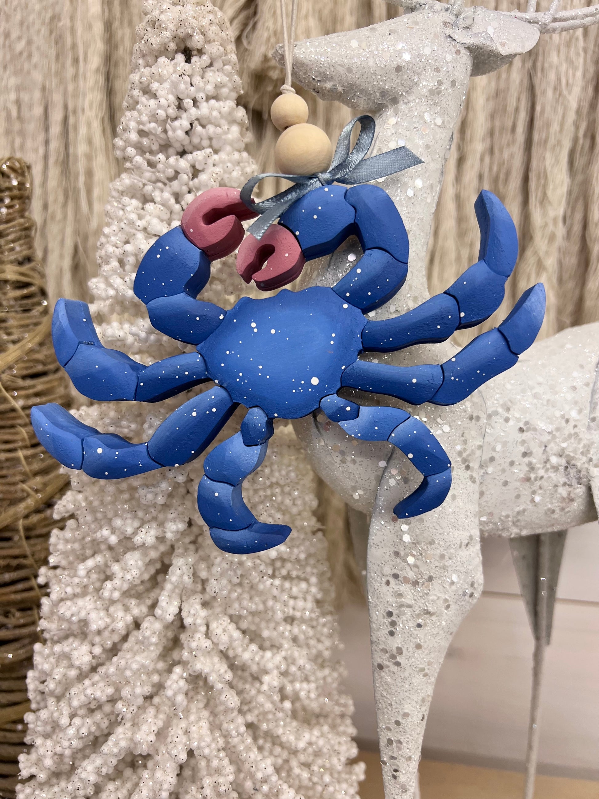 Add a touch of coastal charm to your life with our handcrafted Blue Crab Ornament. With festive, hand-painted details, this one-of-a-kind ornament will be a unique addition to your holiday decorations. Only available here!