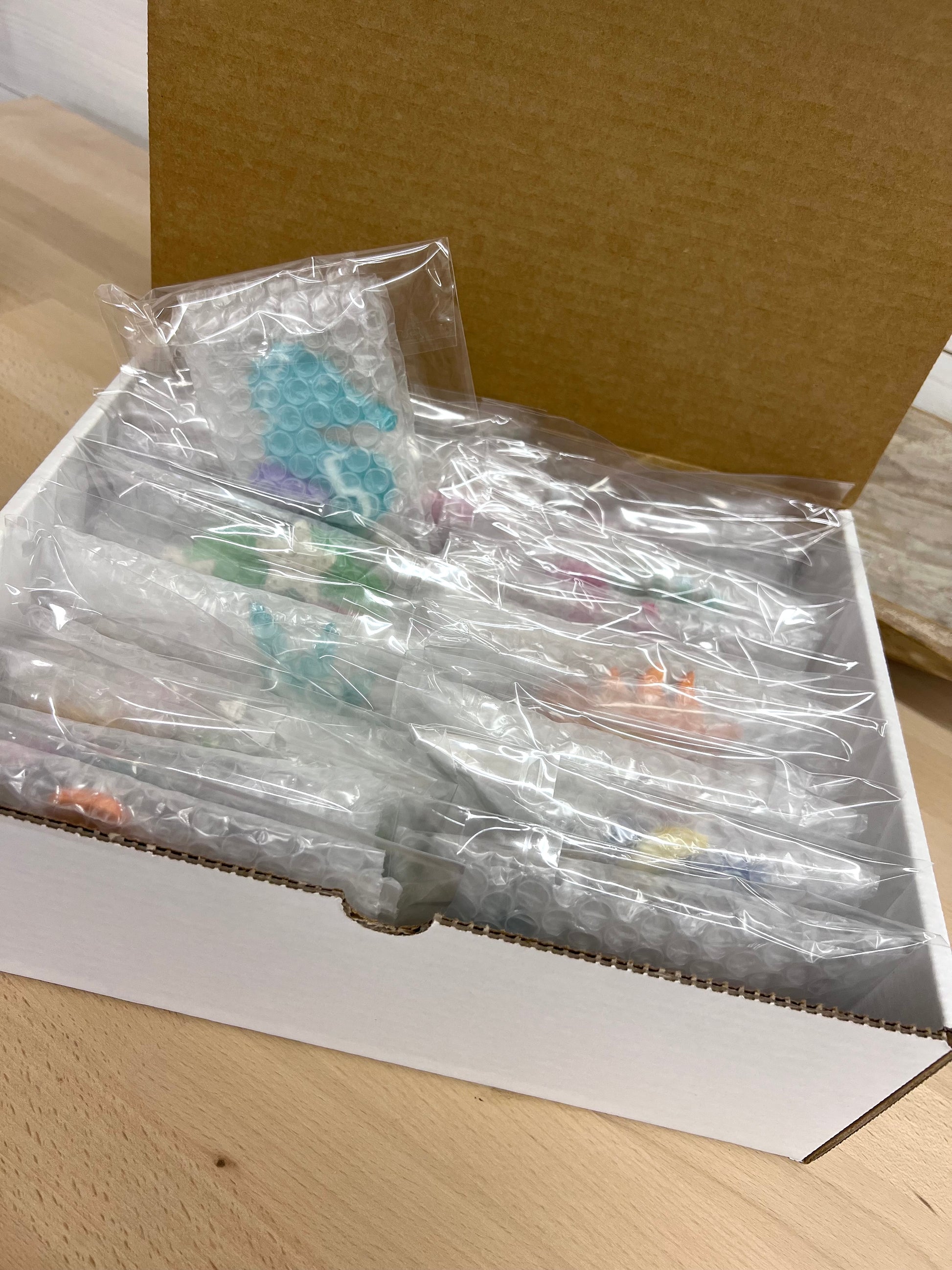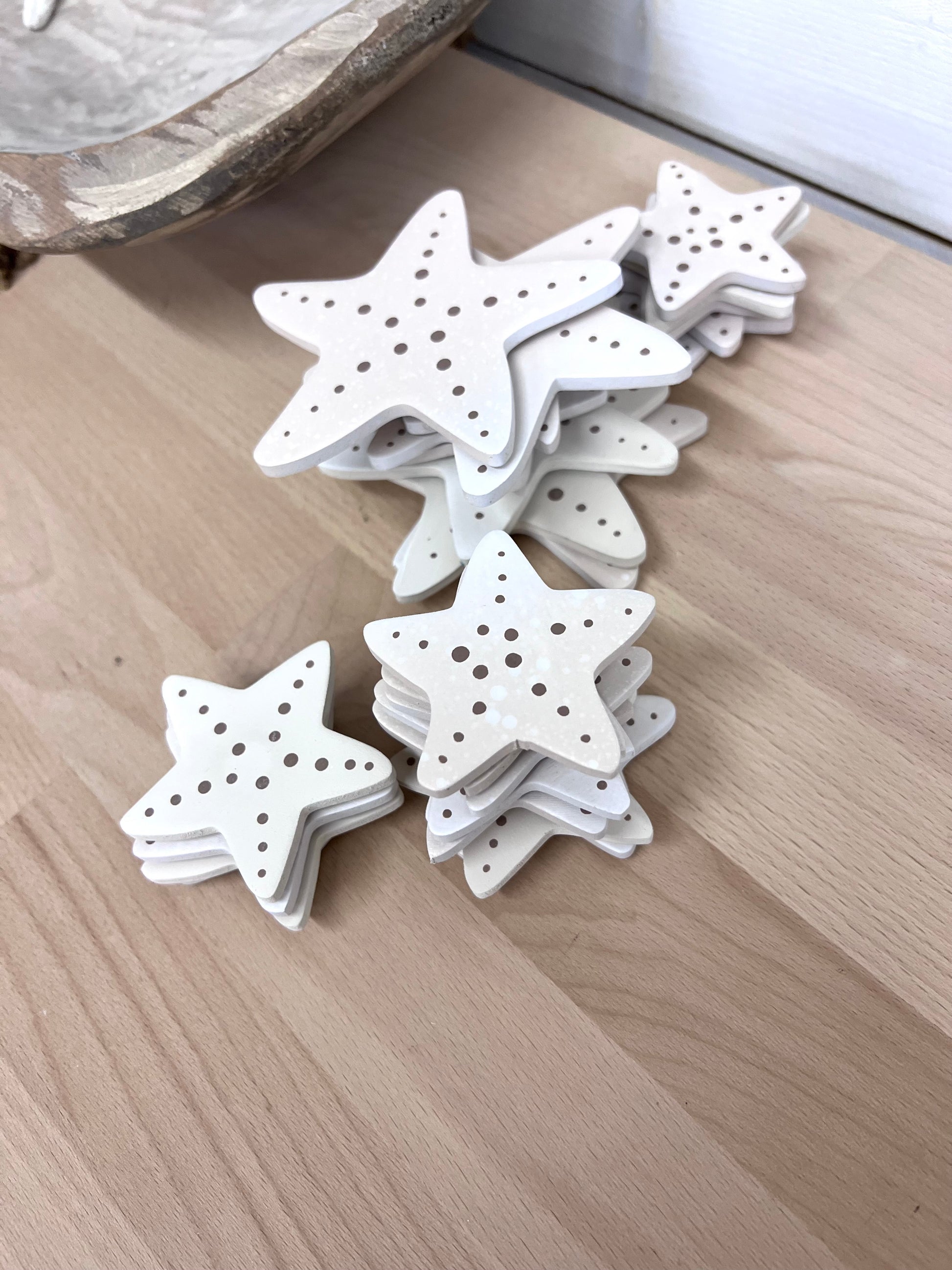 Get ready to count down to Christmas in a unique and playful way with our BOLD & BRIGHT Coastal Christmas Advent/Countdown! Featuring a handcrafted and hand painted coastal underwater scene, this calendar is sure to be the talk of the town. With 26 pieces to countdown and 26 starfish to cover unsightly magnets, embrace the beachy vibes this holiday season. Plus, each piece comes individually wrapped in a cardboard box for easy storage. Starfish come in a small wooden box.