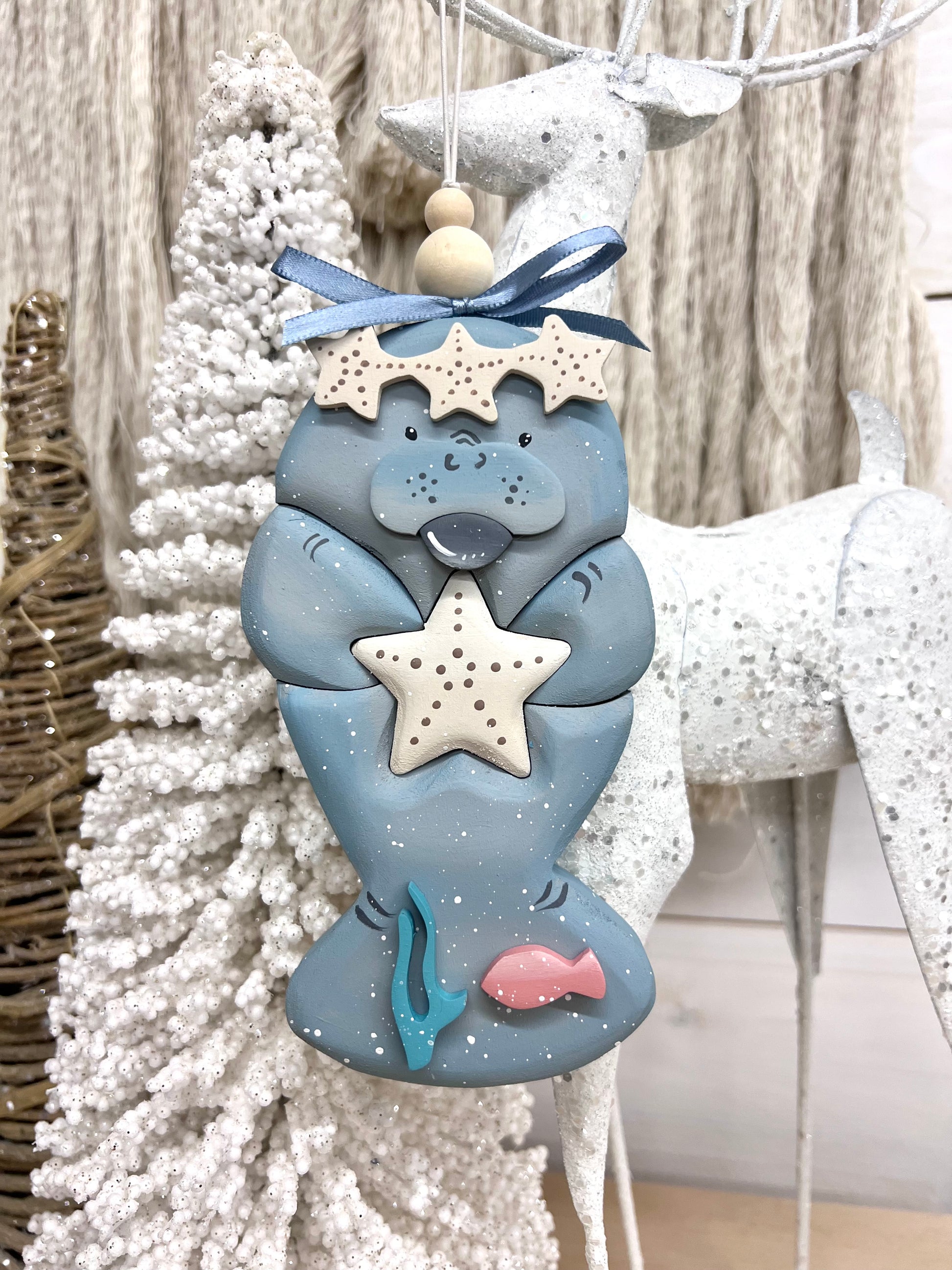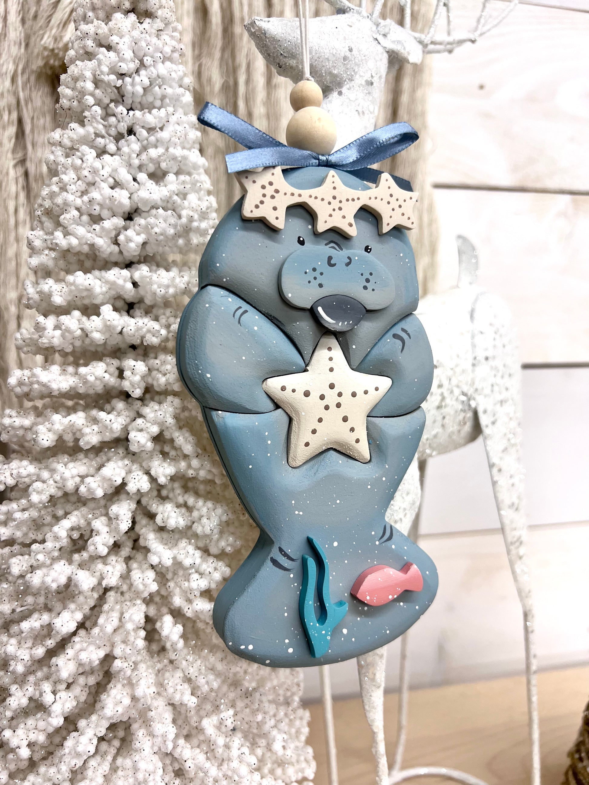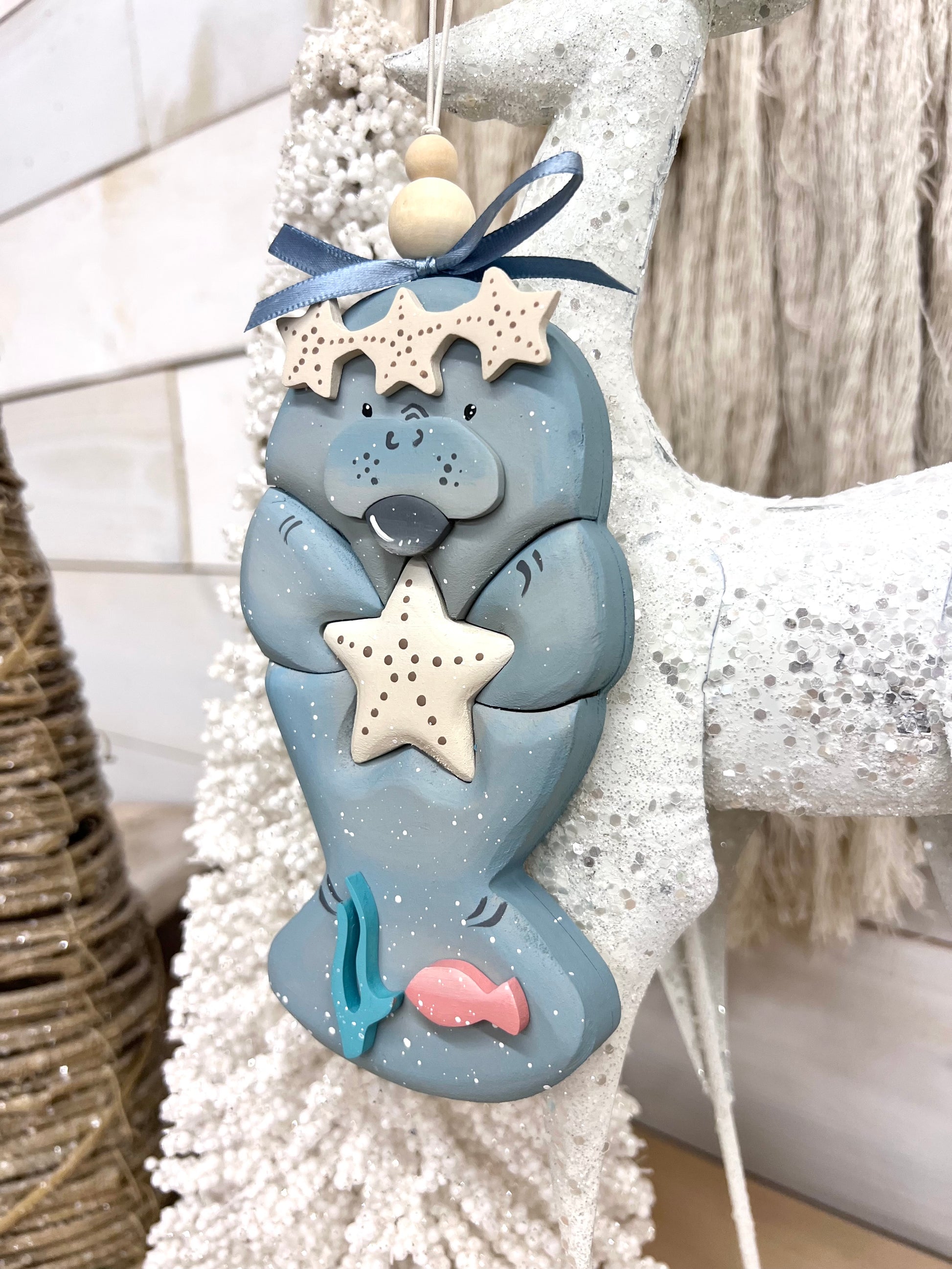 Add a touch of whimsy to your holiday decorations with our handcrafted Manatee Ornament. Hand painted with festive charm and detail, this adorable little guy is a must-have for any Christmas tree. Don't miss out on this one-of-a-kind ornament, that you can only find here!