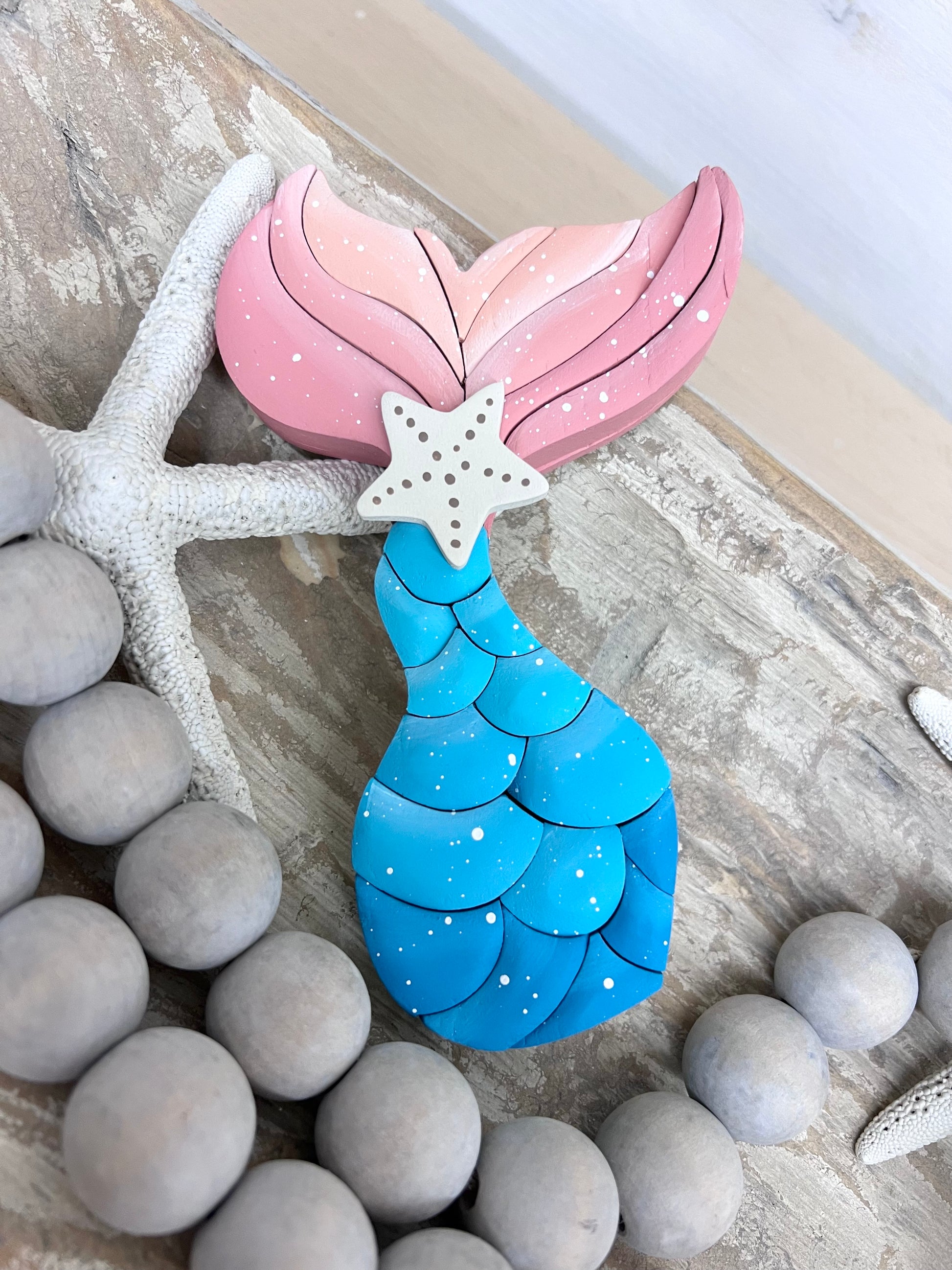 Add a whimsical touch to your home with our Mermaid Tail MAGNET! Handcrafted with love and made from wood, this hand-painted piece features a beautiful design. Bring a smile to your face every day and share the beauty of the sea with friends, or keep it for yourself as a unique and playful decor piece. Makes a great gift too!