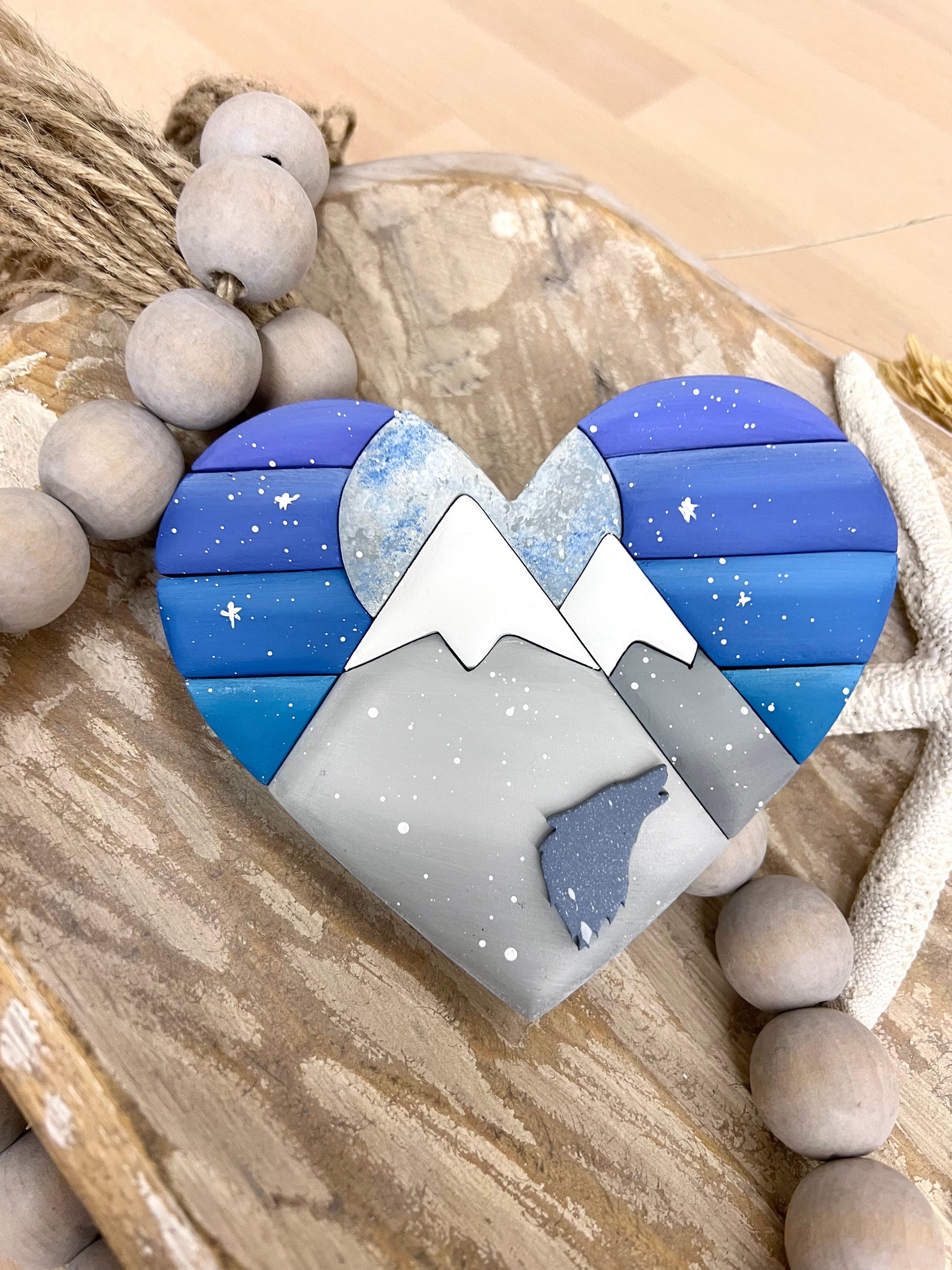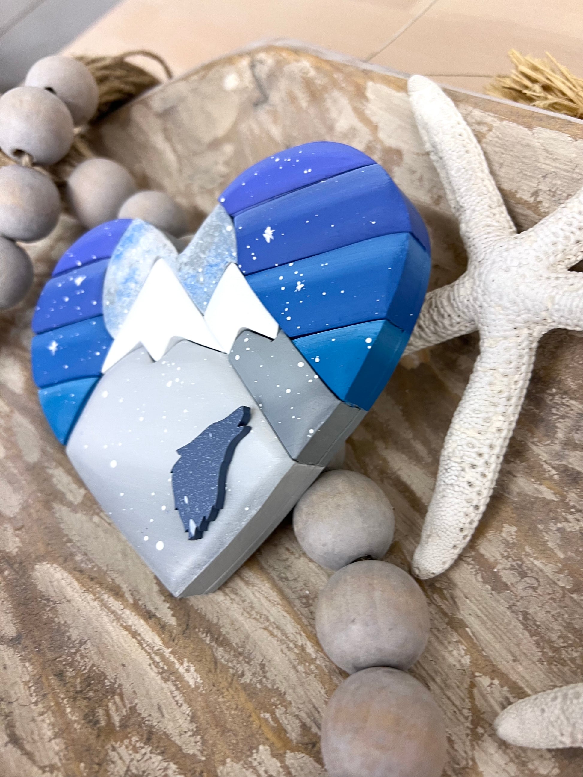 Experience the beauty of the mountains in your own home with the Mountain & Moon MAGNET. Handcrafted with a jewel toned sky and a howling wolf, this one-of-a-kind magnet is perfect for any mountain lover.