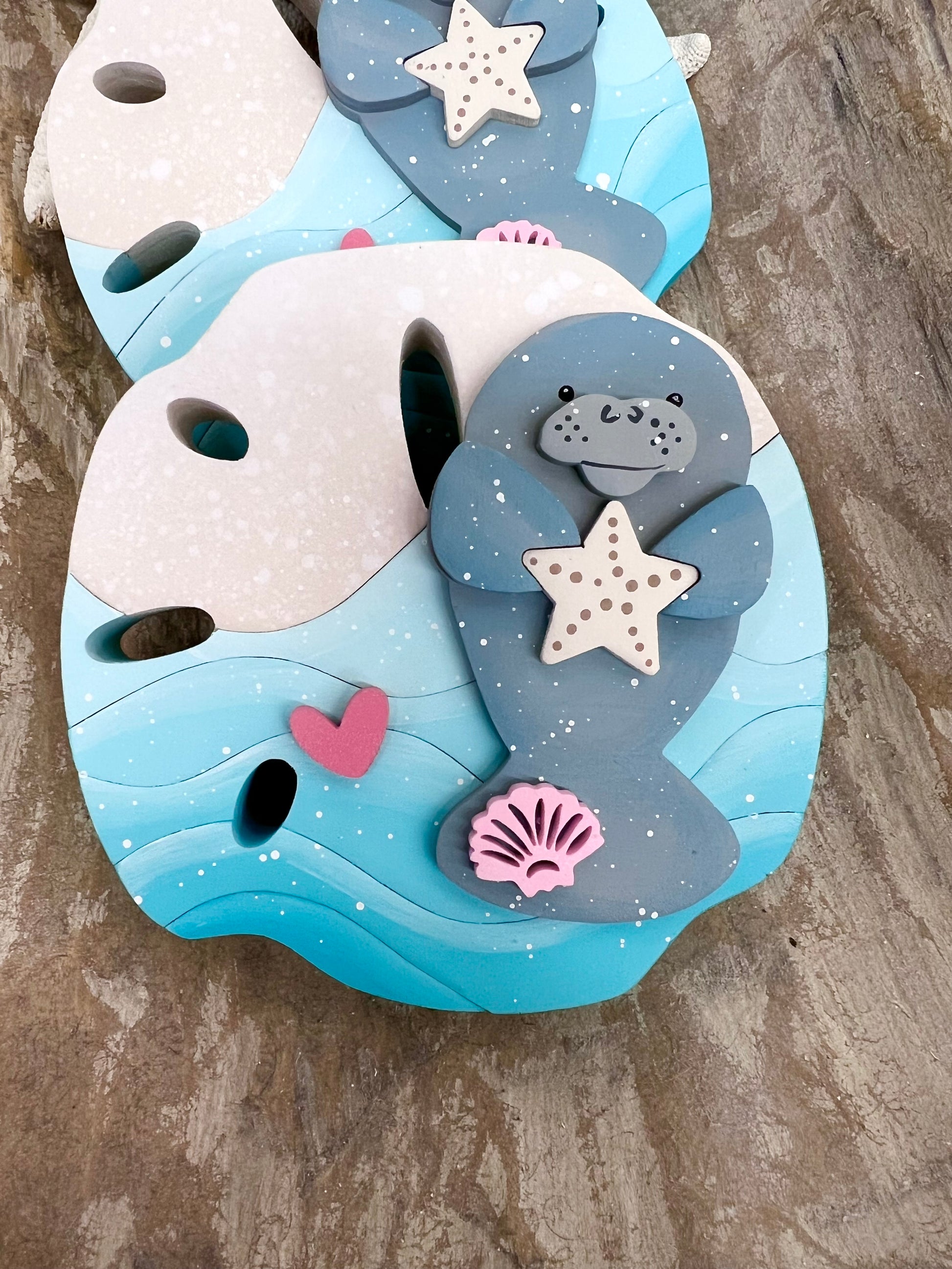 Add a touch of the coast to your home with our wooden Sand Dollar MAGNET featuring a hand-painted Manatee. This cute and unique piece of art is perfect for coastal-inspired decor. Handcrafted with precision, it's a sweet addition to any space.